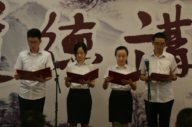 活動在悠揚的旋律中以廉潔自省的形式拉開了序幕。大家集中觀看了《將改革進行到底之黨的自我革新》專題影片,領略了黨中央全面從嚴治黨的堅定決心,并在道德經(jīng)典傳播員的帶領下,一同品味了清代廉臣孫嘉淦為官做人的八項基本準則《居官八約》。參加人員現(xiàn)場分享了嚴守道德操守、堅持廉潔自律的感悟,同時大家在主持人的帶領下做了勤政承諾。最后道德講堂為參加人員送上了精心制作的廉政文化折扇,希望在炎炎夏日中為大家送去清風,傳播廉政文化。