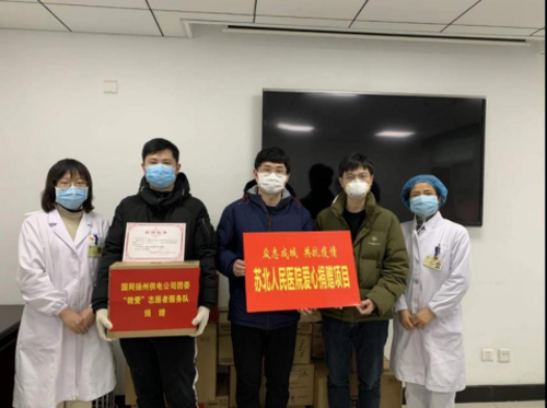 他們?yōu)槿找箞?jiān)守崗位的社區(qū)工作人帶去護(hù)手霜、消毒濕巾等防護(hù)用品,訪問困難戶,送上生活物資和公司自制防控知識(shí)手冊(cè),幫助社區(qū)工作者在街頭巷口張貼關(guān)于疫情防控措施的通告,為社區(qū)群眾帶去了溫暖和保障。2月7日下午,在揚(yáng)州蘇北醫(yī)院抗疫物資捐贈(zèng)儀式上,公司的志愿者親手將采購的洗手液、護(hù)手霜等物資交到了醫(yī)護(hù)人員手中。這些物資,分量不算多,但都凝聚著志愿隊(duì)員們的心血,匯聚著揚(yáng)州供電人對(duì)所有一線醫(yī)護(hù)人員沉甸甸的關(guān)愛。