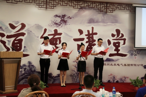 9月29日,為弘揚愛崗敬業(yè)精神,傳播職業(yè)道德美德,北辰電氣集團(tuán)有限公司黨總支舉辦了以職業(yè)道德為專題的道德講堂。此次道德講堂由公司領(lǐng)導(dǎo)班子、公司六級職層、結(jié)對創(chuàng)先支部代表以及新進(jìn)員工等近40名職工參加。