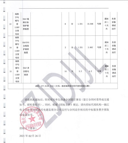 自2019年規(guī)劃建設(shè)寧句線地鐵起,公司領(lǐng)導(dǎo)高度重視,緊跟市場(chǎng)動(dòng)態(tài),持續(xù)跟進(jìn)此項(xiàng)目,多次與地方政府和南京地鐵集團(tuán)方面溝通聯(lián)系,為公司后期能中標(biāo)地鐵項(xiàng)目打下了堅(jiān)實(shí)的基礎(chǔ)。經(jīng)過(guò)不斷的與客戶溝通洽談,最終地鐵110KV句容站項(xiàng)目工程物資于2021年1月順利掛網(wǎng)招標(biāo),蘇南營(yíng)銷事業(yè)部和營(yíng)銷中心收到招標(biāo)公告后認(rèn)真研究招標(biāo)文件,相關(guān)人員加班加點(diǎn),高效率、高質(zhì)量的完成了投標(biāo)任務(wù)。最終憑借公司良好的信譽(yù)、強(qiáng)大技術(shù)實(shí)力以及優(yōu)秀的產(chǎn)品質(zhì)量、合理的報(bào)價(jià)贏得了招標(biāo)單位的肯定,讓公司在眾多的競(jìng)爭(zhēng)者當(dāng)中脫穎而出順利中標(biāo),這無(wú)疑是對(duì)公司的綜合實(shí)力、技術(shù)水平的肯定,也是客戶對(duì)北辰品牌的認(rèn)可。