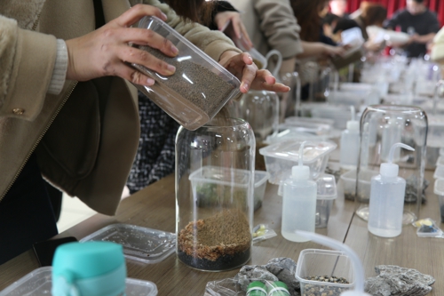 此次微景觀制作活動(dòng),工會(huì)精心挑選的是適合辦公環(huán)境擺放的蘚類主題,配以可愛(ài)的裝飾品,目的是為了讓大家緩解工作壓力,體驗(yàn)別樣的精彩。工會(huì)根據(jù)防疫要求,將女職工分為4組,每組20人左右,在老師的示范和指導(dǎo)下,大家根據(jù)自己的喜好和創(chuàng)意,輕石為底,水苔鋪墊,沙土塑型,過(guò)程中以狼尾蕨、網(wǎng)紋草為主料栽種,仔細(xì)修剪青苔的形狀,小心翼翼地種到玻璃容器中。經(jīng)過(guò)不斷嘗試和創(chuàng)作,大家都完成了自己獨(dú)一無(wú)二的作品,桌上原本其貌不揚(yáng)的植物、卡通玩偶、沙石等,漸漸在大家手中變成妙趣橫生的場(chǎng)景,并得到老師的高度肯定。