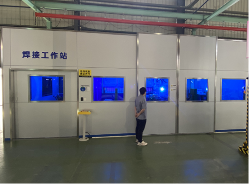 開關(guān)事業(yè)部部門結(jié)合生產(chǎn)工作的現(xiàn)狀、必要性和可行性分析、實(shí)施方案和效益分析,形成了購置自動(dòng)化設(shè)備以提升生產(chǎn)效率和生產(chǎn)能力的可行性研究報(bào)告。通過購置自動(dòng)化設(shè)備,可提升高低壓成套設(shè)備生產(chǎn)效率,可提升充氣類產(chǎn)品技術(shù)生產(chǎn)能力和利潤率水平,將產(chǎn)品做強(qiáng)做優(yōu),最終選定拐角連續(xù)型機(jī)器人焊接系統(tǒng)作為氣箱邊角焊接機(jī)器人,如圖1所示。