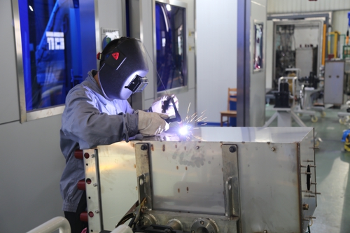 圖為開關事業(yè)部的焊接工人“焊”如雨下,戰(zhàn)高溫、斗酷暑,開關事業(yè)部加班加點于本周完成根據國網2022年第一批次標準化環(huán)網柜物資中標的數量要求而提前備貨的50面單元柜氣箱和交貨期緊急的23臺柱開工程,保證電力設備如期供應。